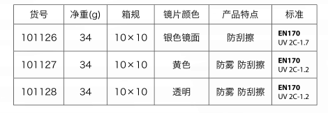 99%紫外線,透明/黃色/鏡面三款針對不同亮度設(shè)計,防護各種強度的光線。